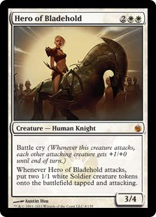 Sin duda, uno de los bombazos más grandes de esta edición es este caballero, que a pesar de carecer de las protecciones típicas de su especie como las del Mirran Crusader, y no tener first strike, se puede hacer un hueco en barajas de soldaditos o de caballeros.